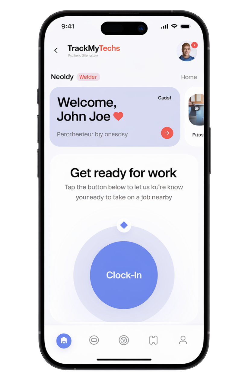 Technicians can easily clock in when they're ready for work. Straightforward work status management without complicated features.